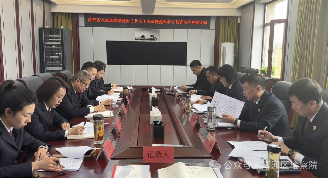 4月16日,清河区人民检察院召开党组扩大会议,认真学习贯彻习近平总书记关于党纪学习教育的重要讲话和重要指示精神,贯彻落实中央党的建设工作领导小组会议和《中共中央办公厅关于在全党开展党纪学习教育的通知》精神,传达学习省委、市委、区委关于开展党纪学习教育工作会议精神,对全院开展党纪学习教育进行部署。院党组书记、代检察长李建伟主持会议并讲话。