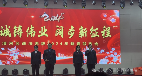 新春联欢会为了营造喜庆祥和的节日氛围,丰富政法干警的文化生活,加快推进平安法治清河建设进程,2月1日,清河区人民检察院积极参演由清河区委政法委组织的“忠诚铸伟业、阔步新征程”清河区政法系统2024年新春联欢会,演出取得了圆满成功。