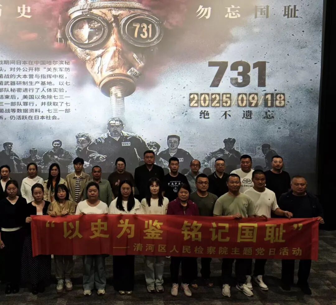 为弘扬伟大的抗战精神,铭记历史,持续强化检察干警思想政治教育。在“九·一八事变纪念日”到来之际,清河区人民检察院组织全体干警集中观看历史题材电影《731》,开展“以史为鉴 铭记国耻”主题党日活动,通过沉浸式教育引导干警铭记苦难历史、汲取奋进力量。