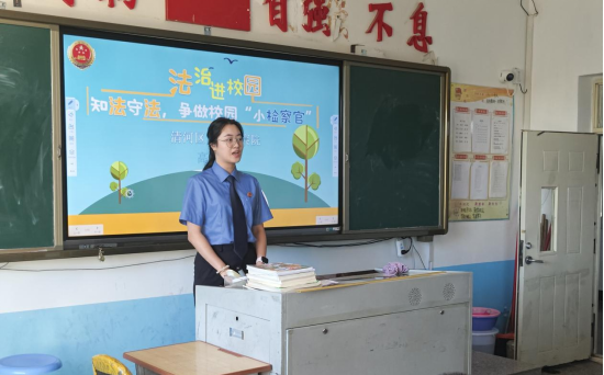9月4日,未成年人检察条线青年干警朱成威到清河区聂家满族乡九年一贯制学校,以通俗易懂的语言和真实典型的未成年人违法犯罪案例,为在校的中小学生详细讲述了如何预防犯罪和自我保护等方面知识,为同学们普及法律常识,提醒同学们远离KTV、网吧、酒吧等不适宜未成年人进入的营业性娱乐场所,如遇危险及时向老师、家长以及司法部门求助,从源头上预防违法犯罪行为的发生。